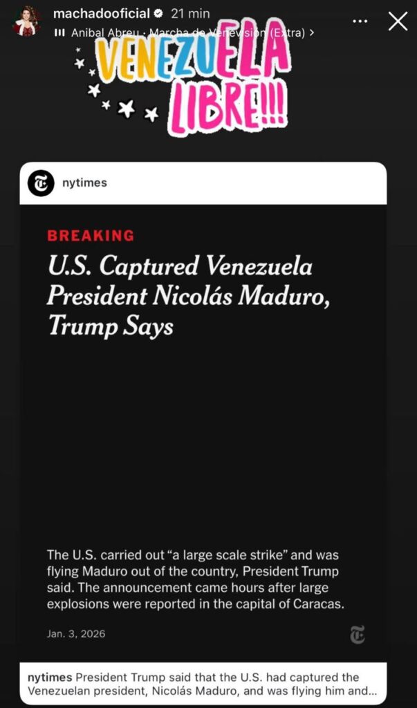 A su vez, Lele Pons utilizó historias de Instagram para transmitir calma y esperanza, reafirmando su postura crítica frente al régimen. Las reacciones muestran cómo el impacto de la noticia trascendió la política y se instaló con fuerza en el ámbito cultural y social.