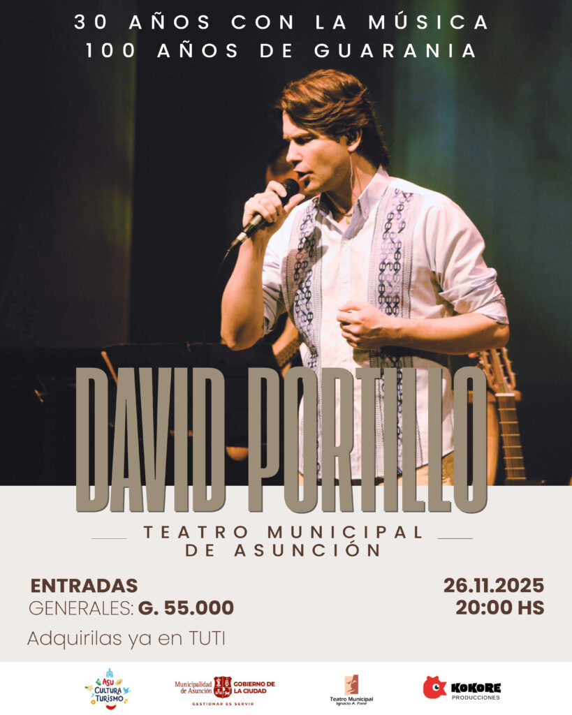 El reconocido cantante paraguayo David Portillo se prepara para un concierto especial el próximo 26 de noviembre en el Teatro Municipal Ignacio A. Pane de Asunción, donde celebrará sus 30 años de trayectoria artística. Este evento no solo conmemorará su carrera, sino que también marcará el cierre de su exitosa gira “100 Años de Guarania”, un recorrido que llevó el ritmo y la emoción de este género emblemático a distintas ciudades del país.
