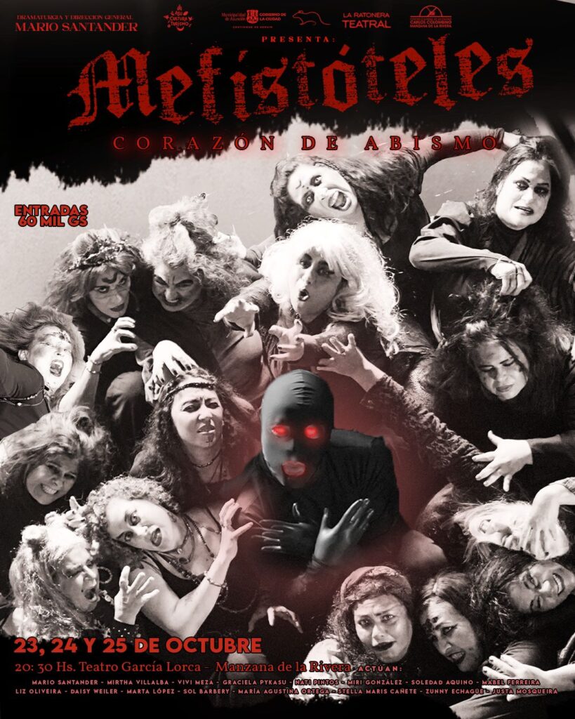 “Mefistófeles, corazón de abismo” se presenta los días 23, 24 y 25 de octubre a las 20:30 h en el Teatro García Lorca de la Manzana de la Rivera. Las entradas tienen un costo de Gs. 60.000 y pueden adquirirse al 0985 202 778. Una experiencia escénica que se aleja de lo habitual y propone mirar hacia donde más tememos: adentro. Porque lo que no se enfrenta, permanece. Y lo que no se nombra, nos habita.