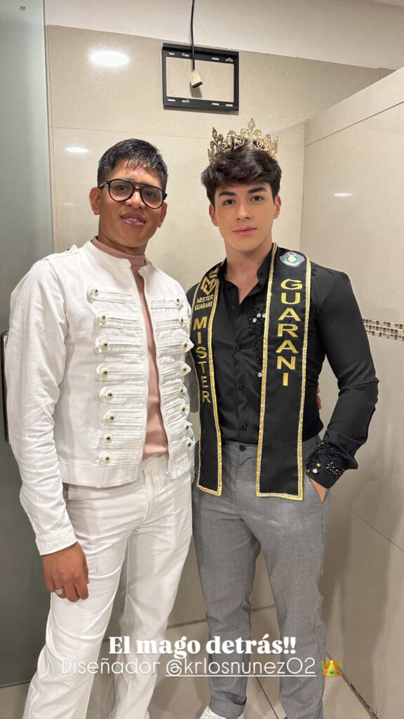 Durante el fin de semana, Esteban estuvo en Asunción participando de un importante evento vinculado al certamen, donde se realizó la imposición de bandas a los candidatos oficiales que competirán por la corona de Mister Guaraní 2026. La actividad reunió a distintos participantes y marcó el inicio formal de una nueva etapa del concurso.