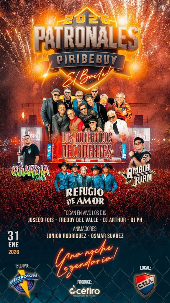 Este 31 de enero, Piribebuy recibirá a Los Auténticos Decadentes en un show especial por los 30 años del disco Mi vida loca. La banda argentina promete una noche inolvidable, con un recorrido por sus canciones más populares y un clima de fiesta total. El evento contará además con la participación de Refugio de Amor, Qmbia Juan y la Vieja Guardia.