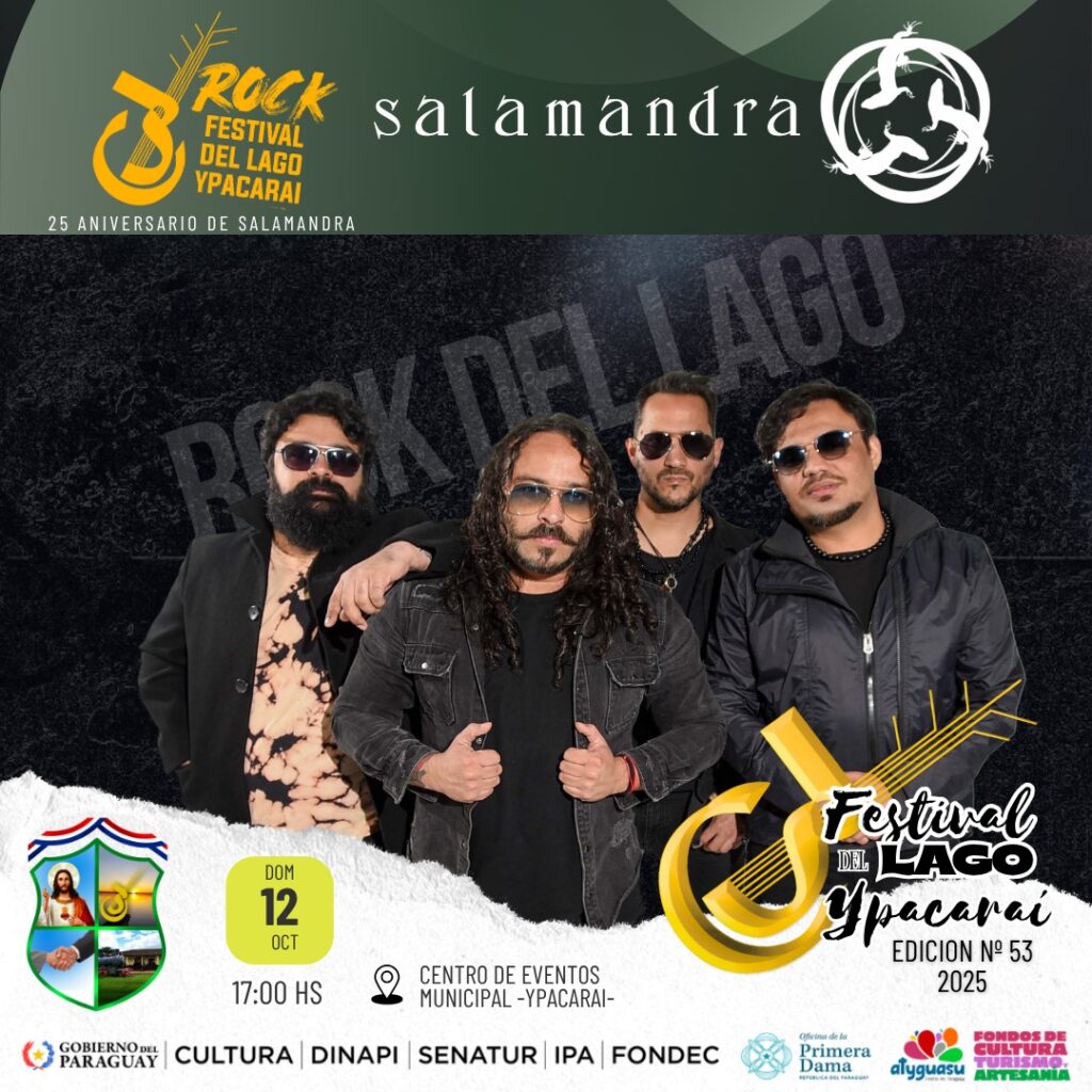 Además de Salamandra, el escenario vibrará con la presencia de grupos como Paiko, Vecindad Autopsia, Radio Base, Dark Line, Karma y Mike y La Fakinshi, conformando una grilla poderosa que dejará claro por qué el Rock del Lago se ha convertido en una tradición imperdible para los amantes del rock hecho en Paraguay.
